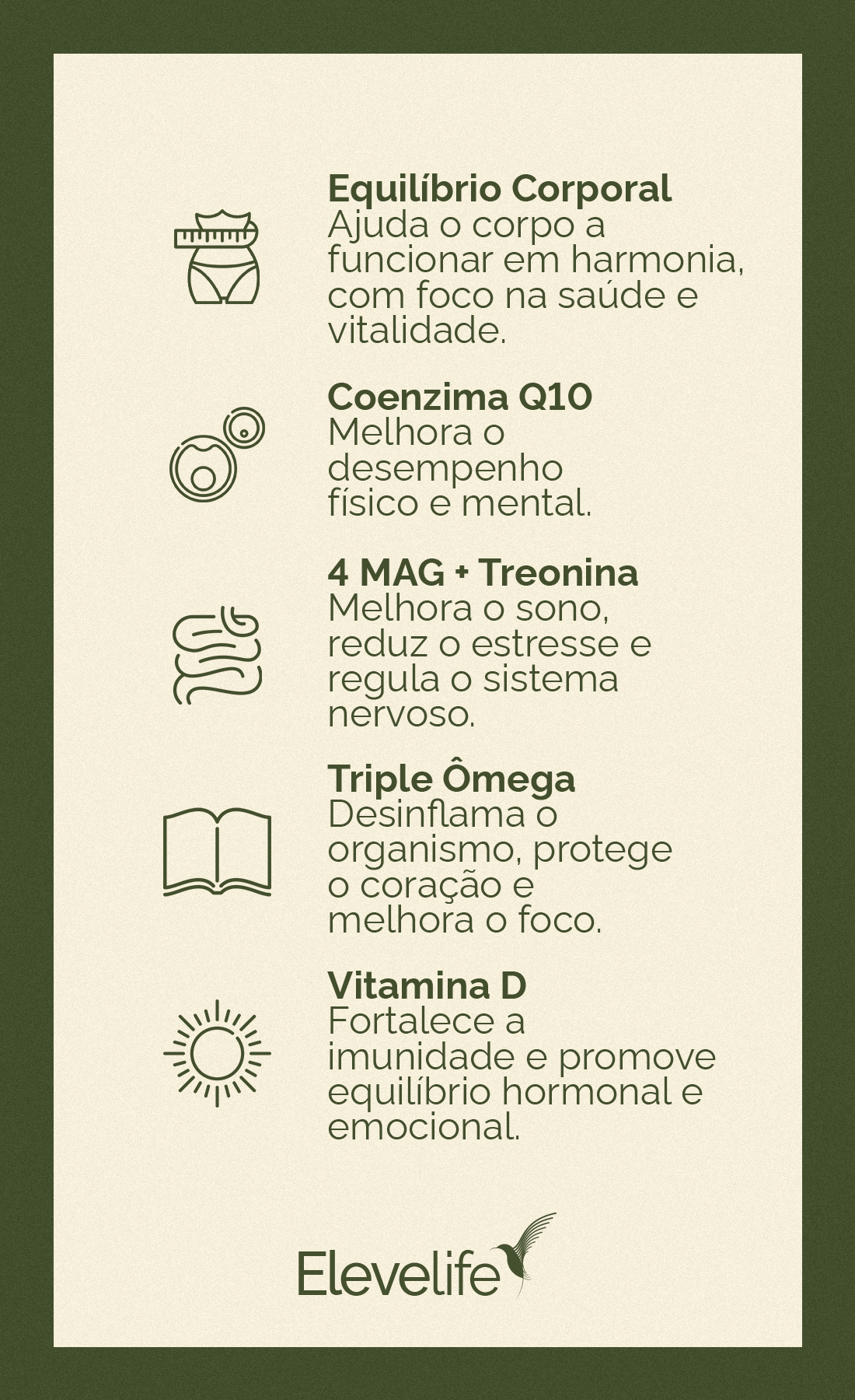 O Protocolo Essencial da Elevelife combina 4 suplementos que atuam em sinergia para restabelecer o equilíbrio físico, mental e emocional.
