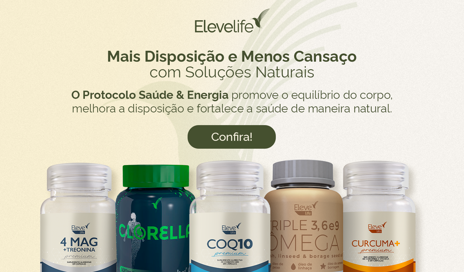 Esse Kit Elevelife reúne produtos cuidadosamente selecionados para oferecer saúde e bem-estar. Feito com ingredientes 100% naturais, é rico em aminoácidos, vitaminas e ômegas 3, 6 e 9, essenciais para o coração, memória e imunidade. Inclui a Clorella, que desintoxica e protege o fígado, o MAG 4 + Treonina, ideal para saúde muscular, nervosa e óssea, além da cúrcuma e COQ10, com propriedades antioxidantes e anti-inflamatórias para mais energia e equilíbrio no dia a dia. Perfeito para quem busca longevidade e qualidade de vida!